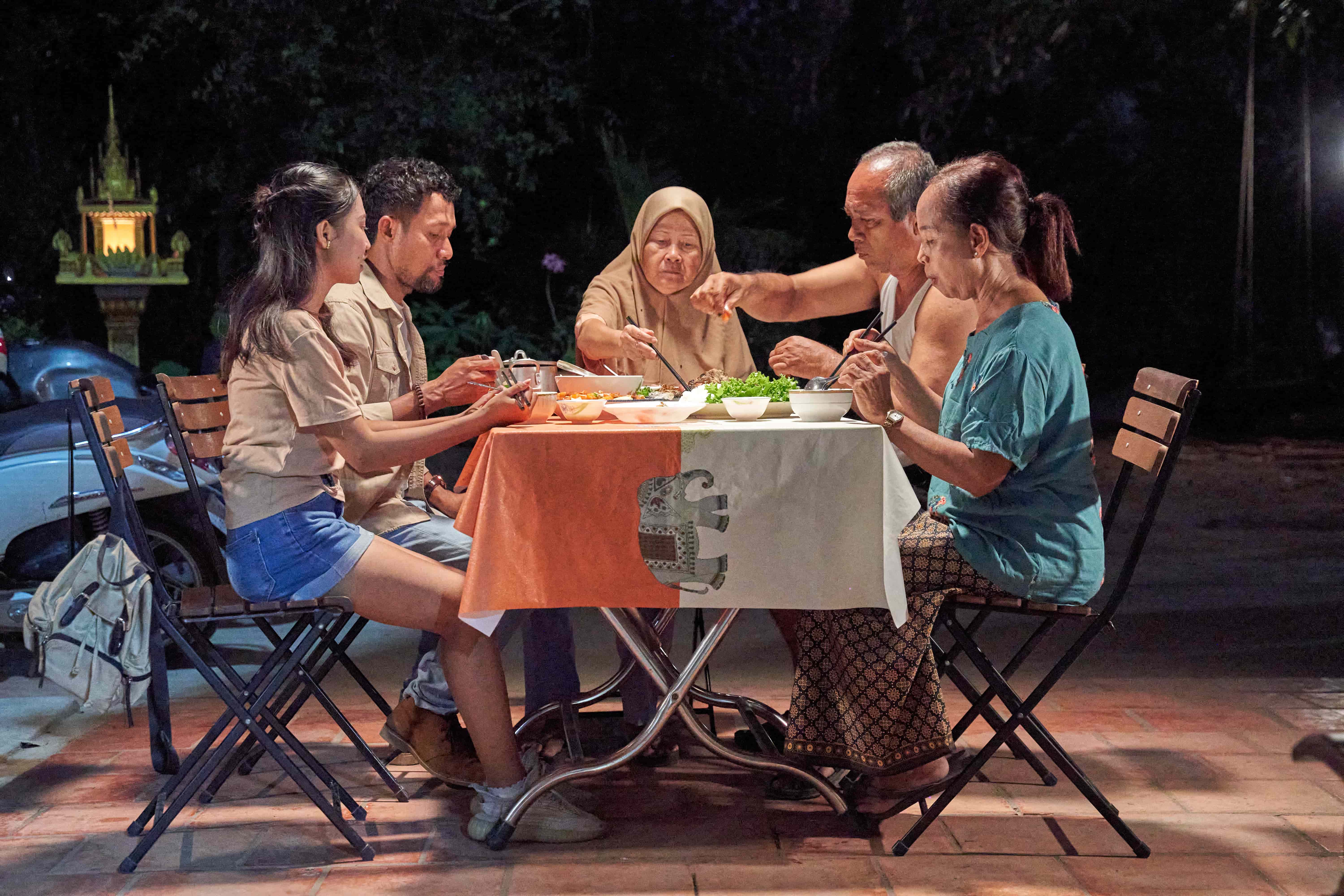 Mey Long, une grand-mère musulmane, reste proche des descendant·es bouddhistes de son défunt frère. Malgré des désaccords quotidiens, ils et elles forment une famille chaleureuse et unie.